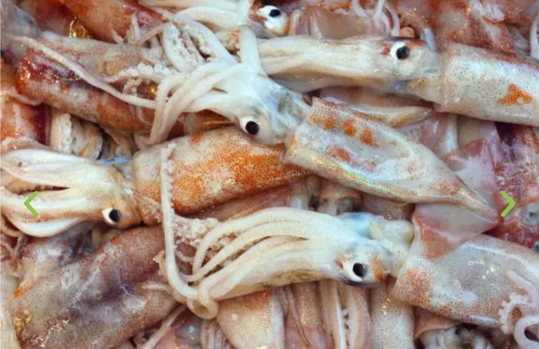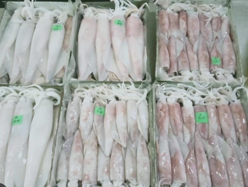 Fishery and marine products such as dried fish, frozen seafood, and seafood products ready for export.